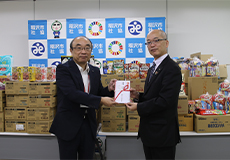 Food in company emergency stores that is nearing its expiration date is donated to Second Harvest Nagoya, an NPO food bank, which then provides this food to people in need.