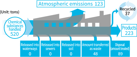 In production processes, we are switching to water-based paint and release agents, making painting lines more compact, improving coating efficiency, and making other efforts to reduce Pollutant Release and Transfer Register (PRTR) substances.