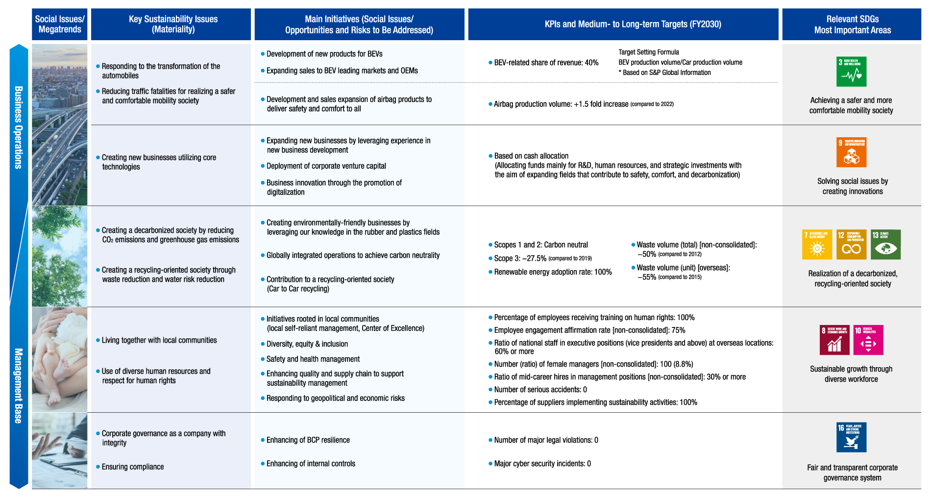 In order to realize the vision for the Company and the delivered value set forth in the 2030 Business Plan, we have designated and worked on several key areas as “materiality” where we can make a particular contribution from among various social issues, such as social forecasts and SDGs, taking into consideration the changing business environment.