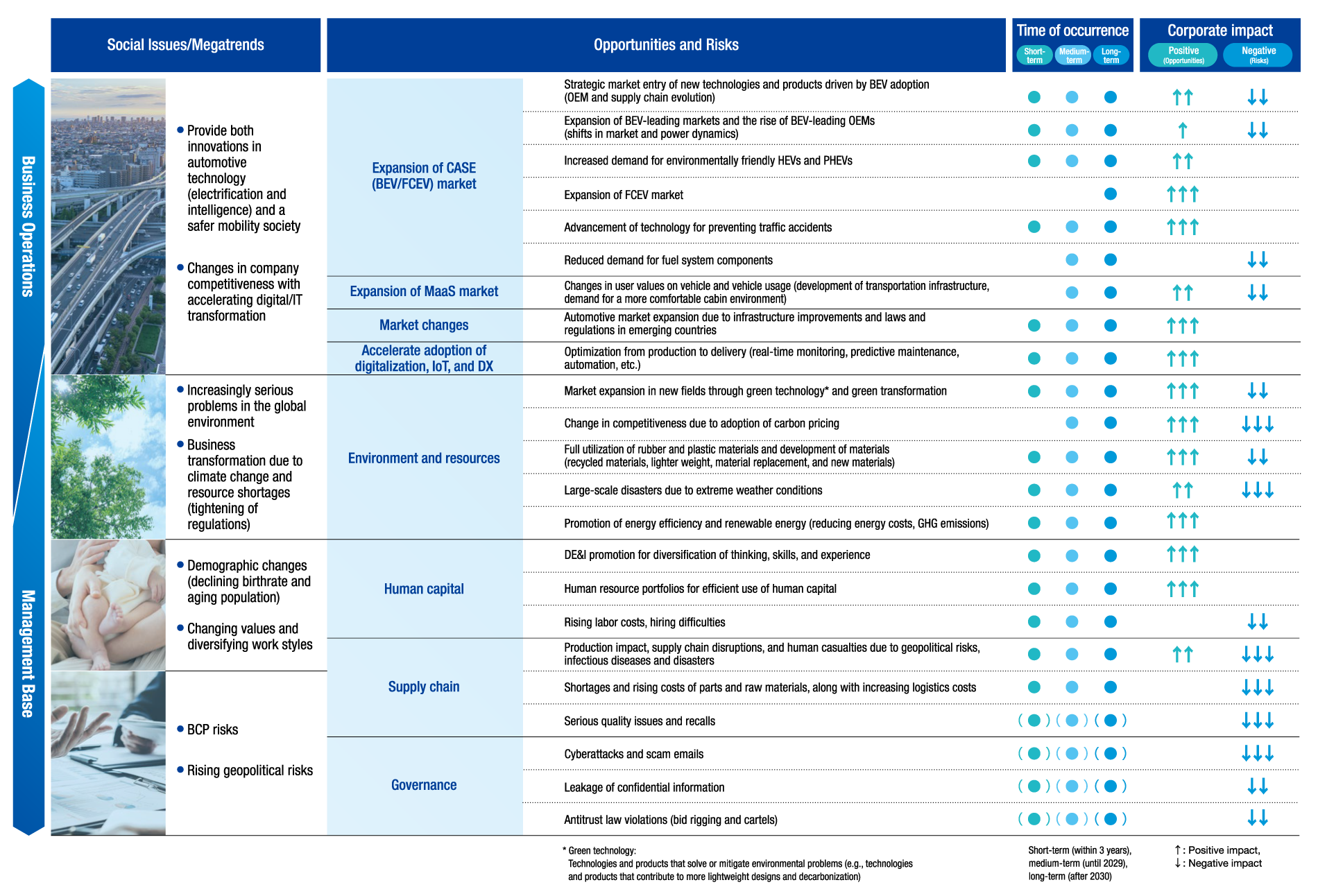Material issues are selected based on opportunities and risk with consideration of societal challenges and megatrends.